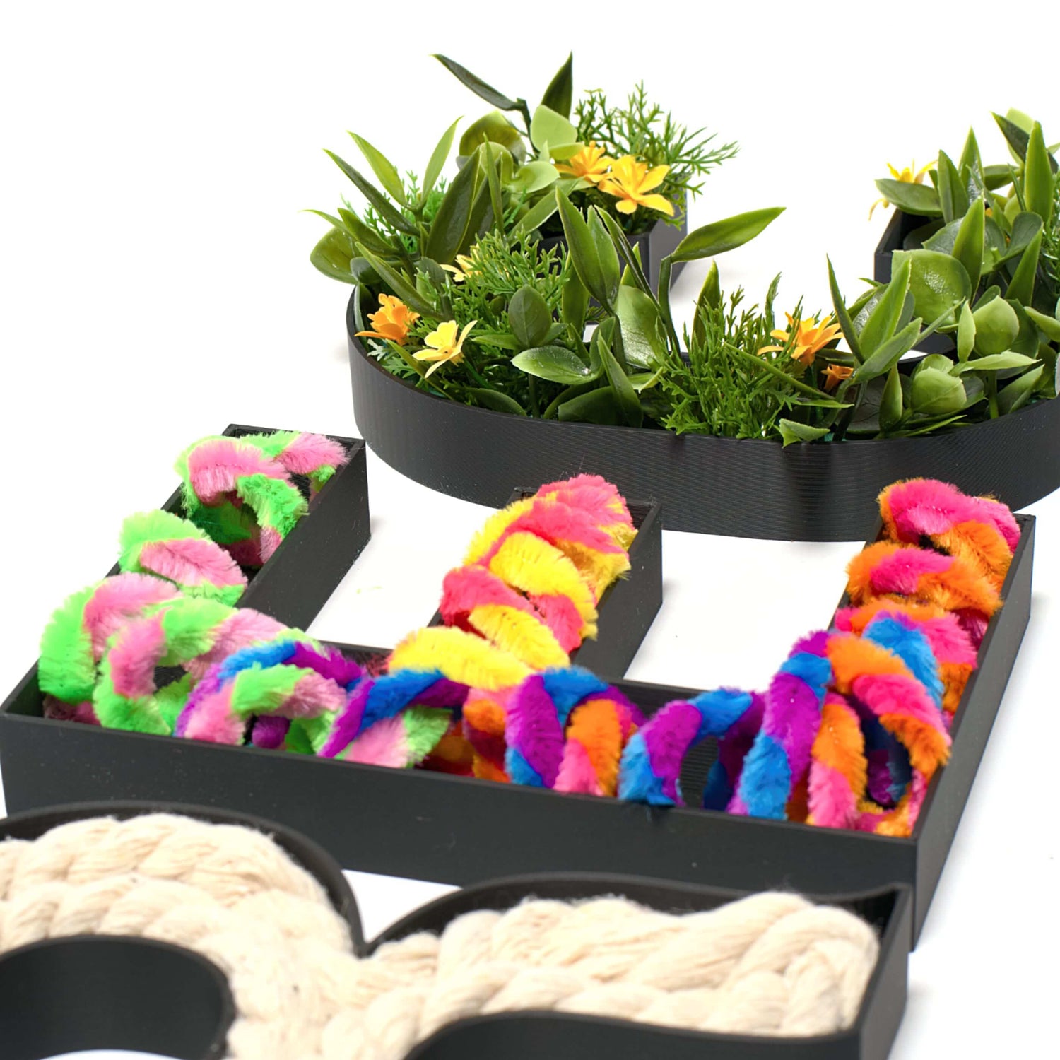 Unsere Kreativrahmen für Buchstaben, Zahlen und Symbole stehen dir in vielen Farben und Größen zur Verfügung.