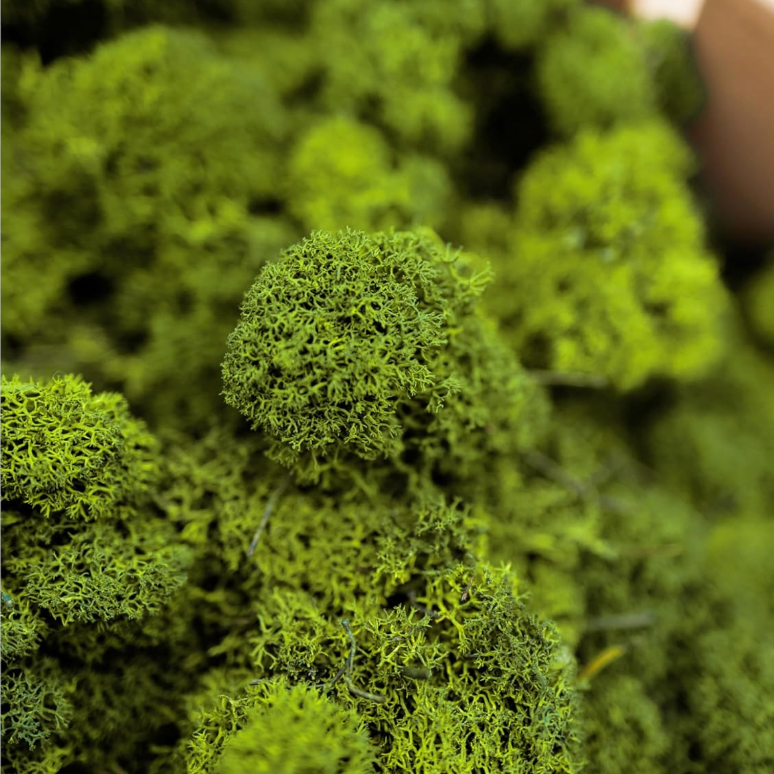 Das Moos wird mit Farben auf Lebensmittelbasis eingefärbt, wodurch natürliche Farb- und Formabweichungen entstehen können. Die Farben sind langlebig und lichtecht, sodass das Deko-Moos dauerhaft seine Schönheit behält – ganz ohne Pflege oder Bewässerung.